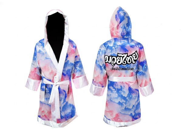 Peignoir de boxe ou robe de combat personnalisée par sublimation. Robe de boxe imprimée pour les pratiquants de Muay Thaï.